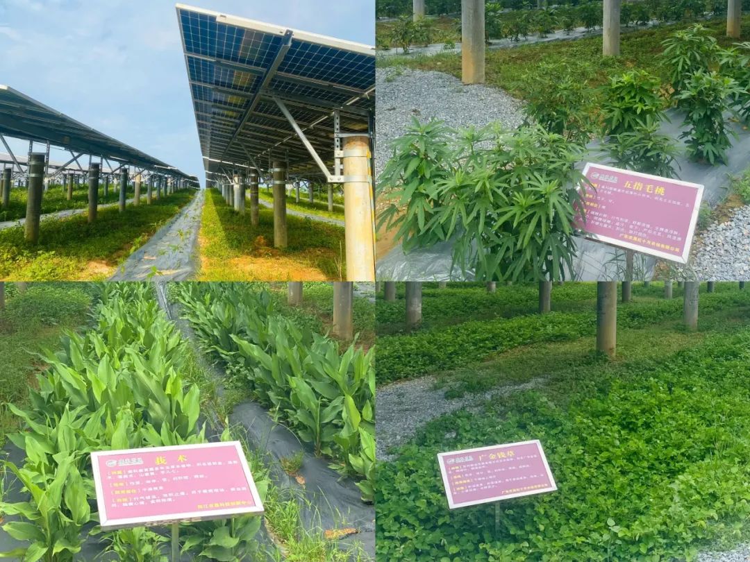 项目位于阳江市江城区双捷镇红十月农场,距阳江市中心26公里,占地面积约4200亩,采用280多万平米农用地及坑塘水面,将绿电与农业有机结合,创新“光伏+南药”产业发展新模式,充分利用光伏支架下部的闲置土地,种植佛手、广金钱草、五指毛桃、溪黄草、天冬、广藿香等18种南药。